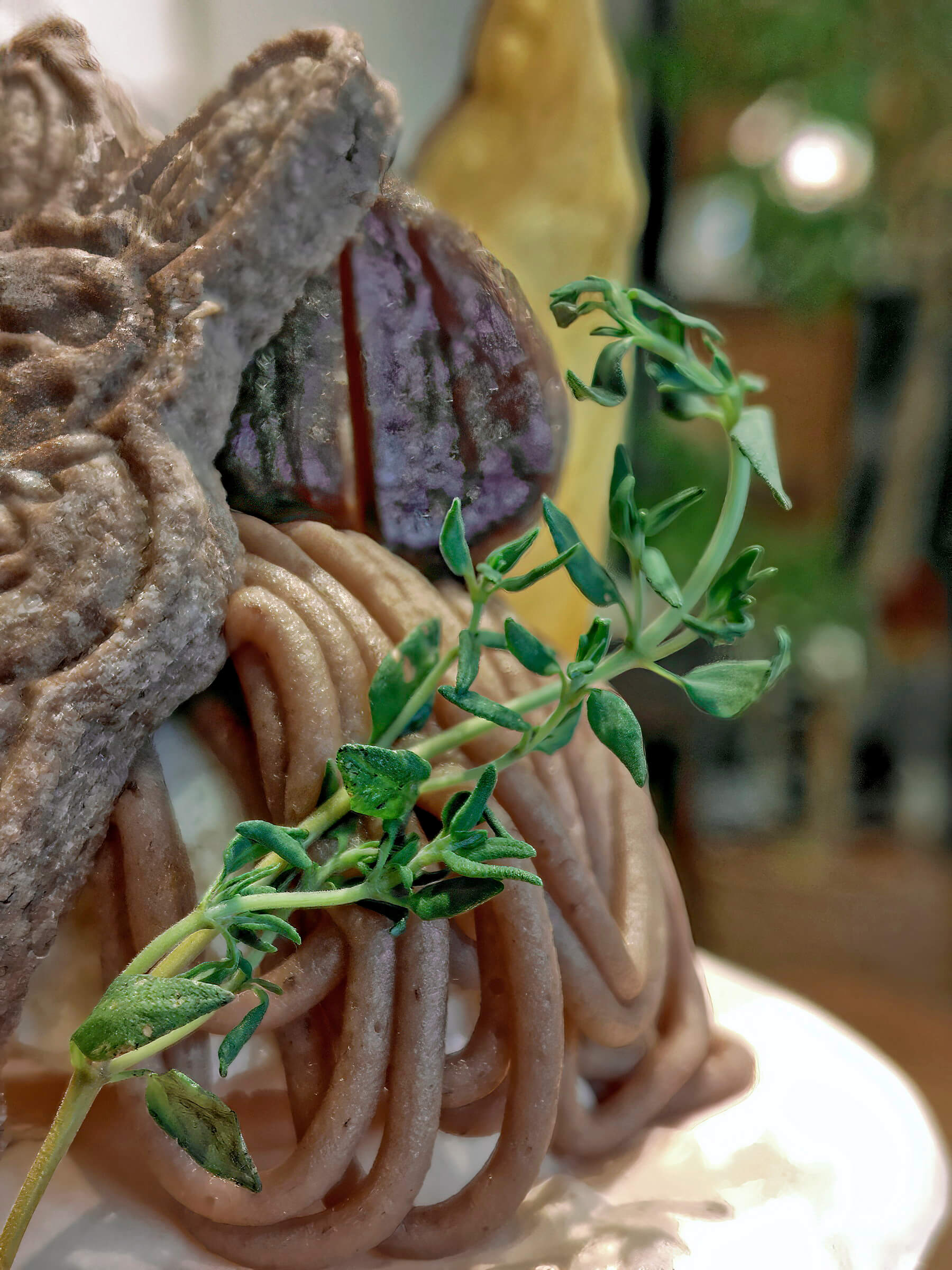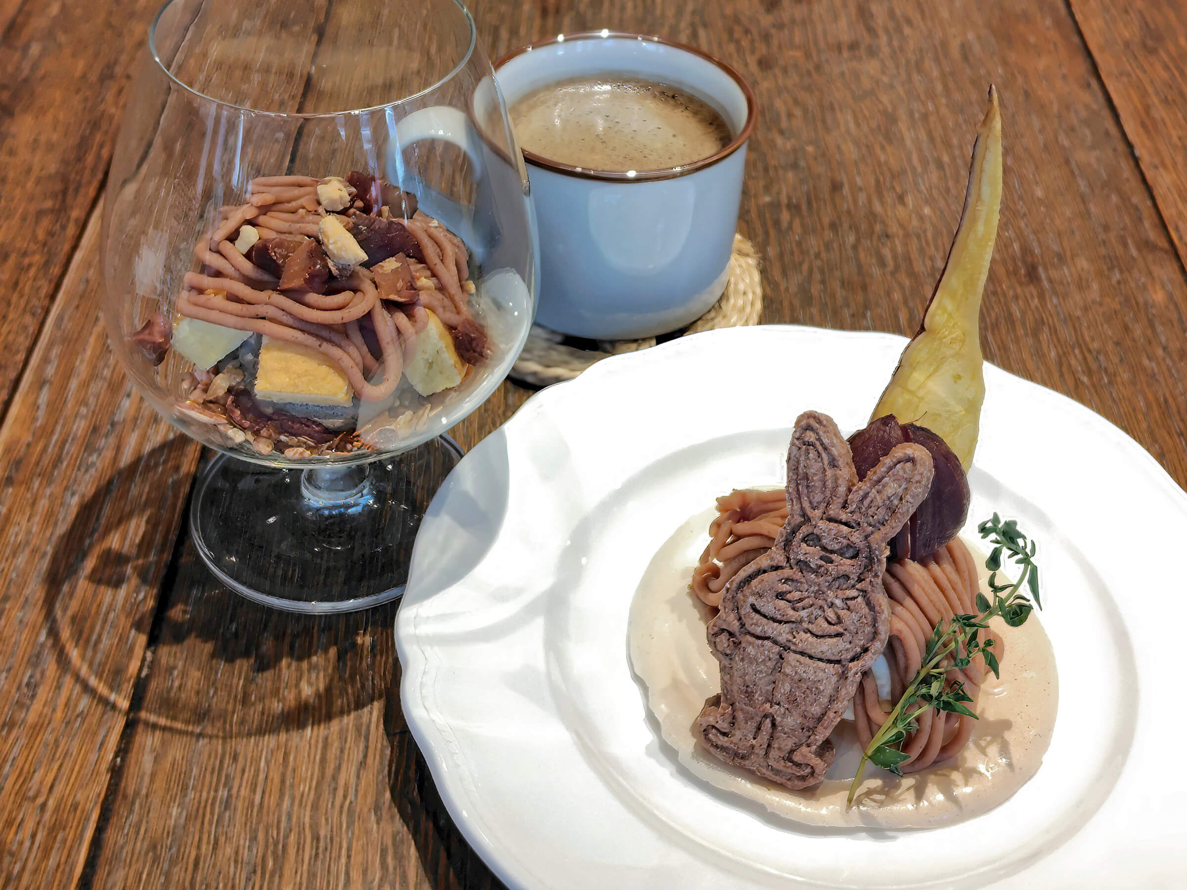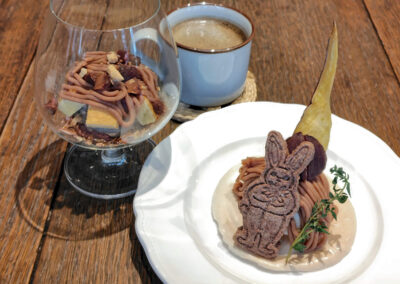 スポンジケーキ、宇治和束産ほうじ茶ムース、