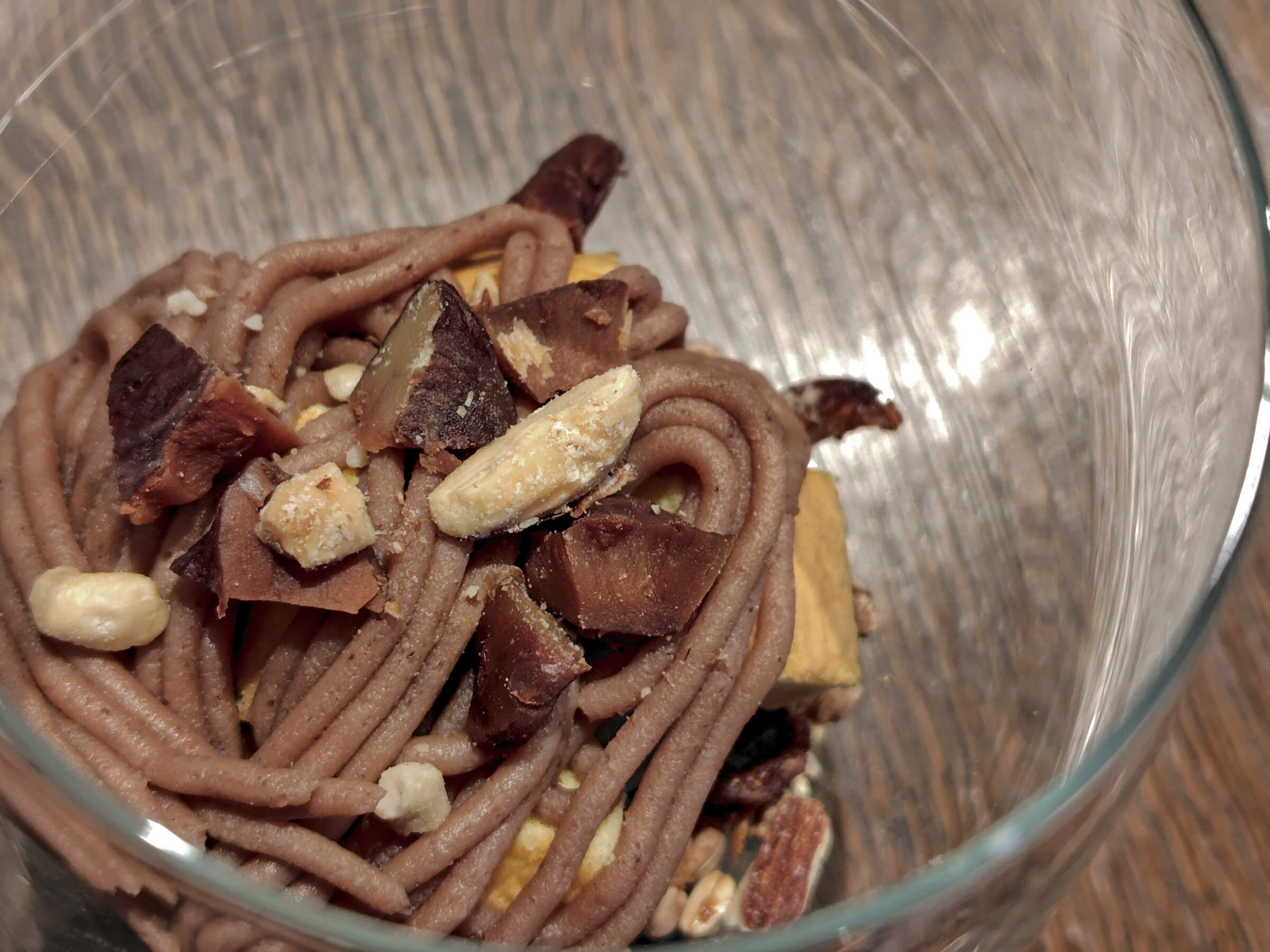 もち麦やココアグラノーラ、ナッツが重なり合い、