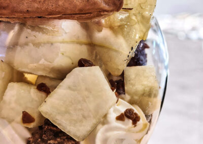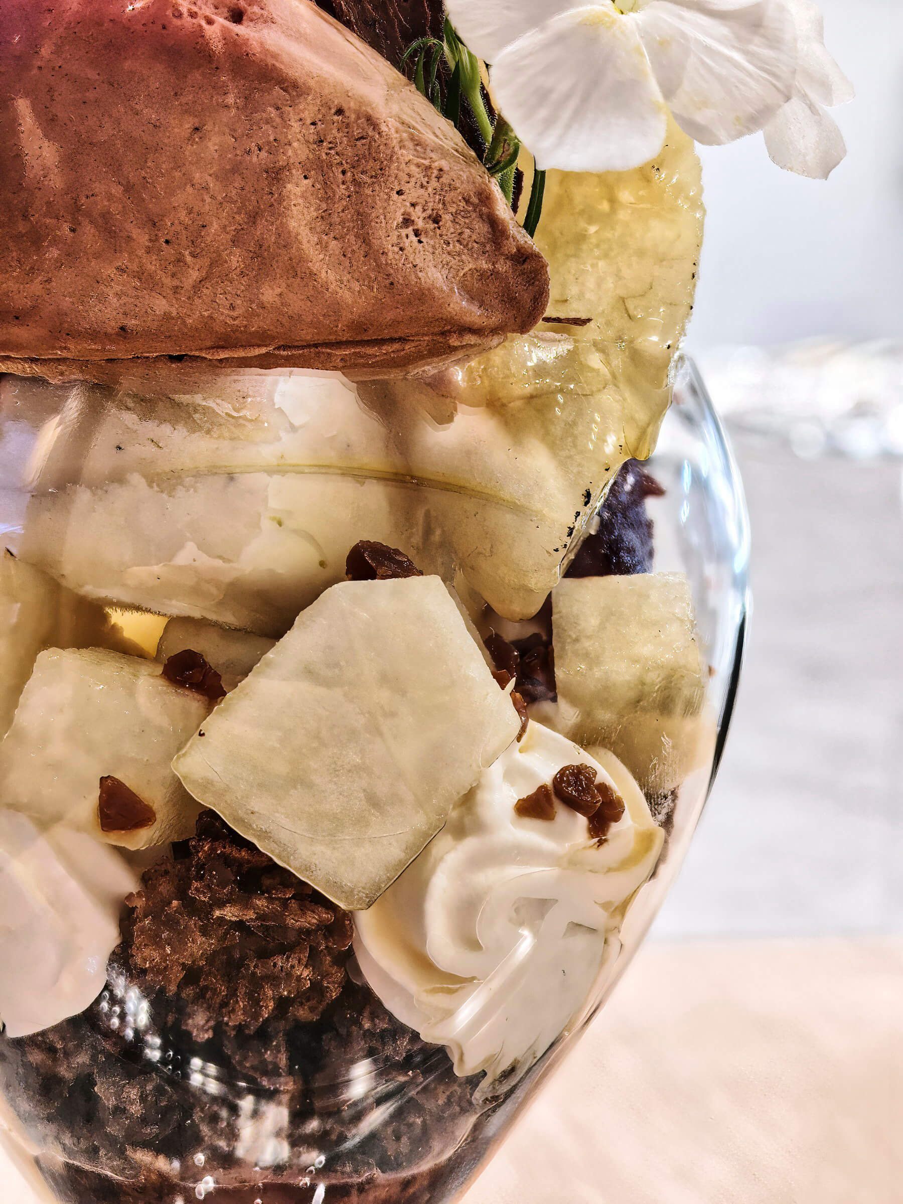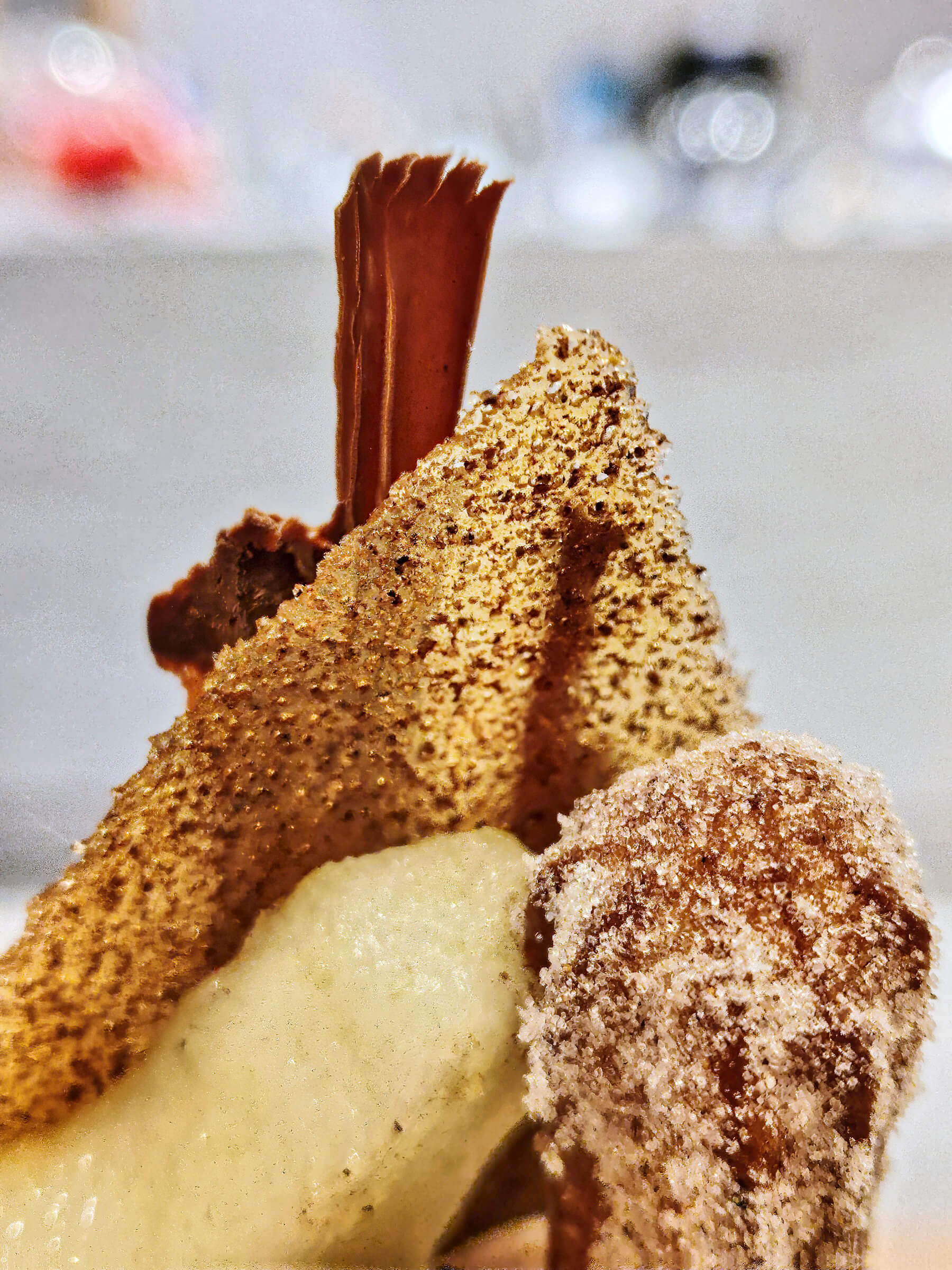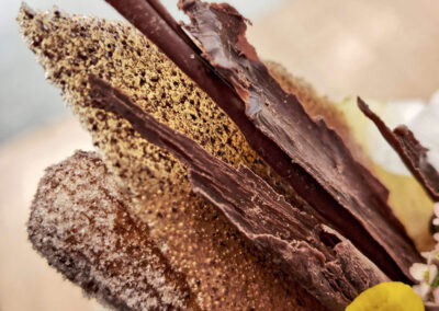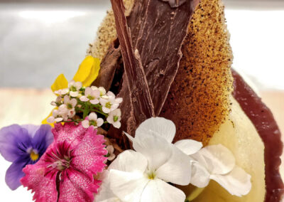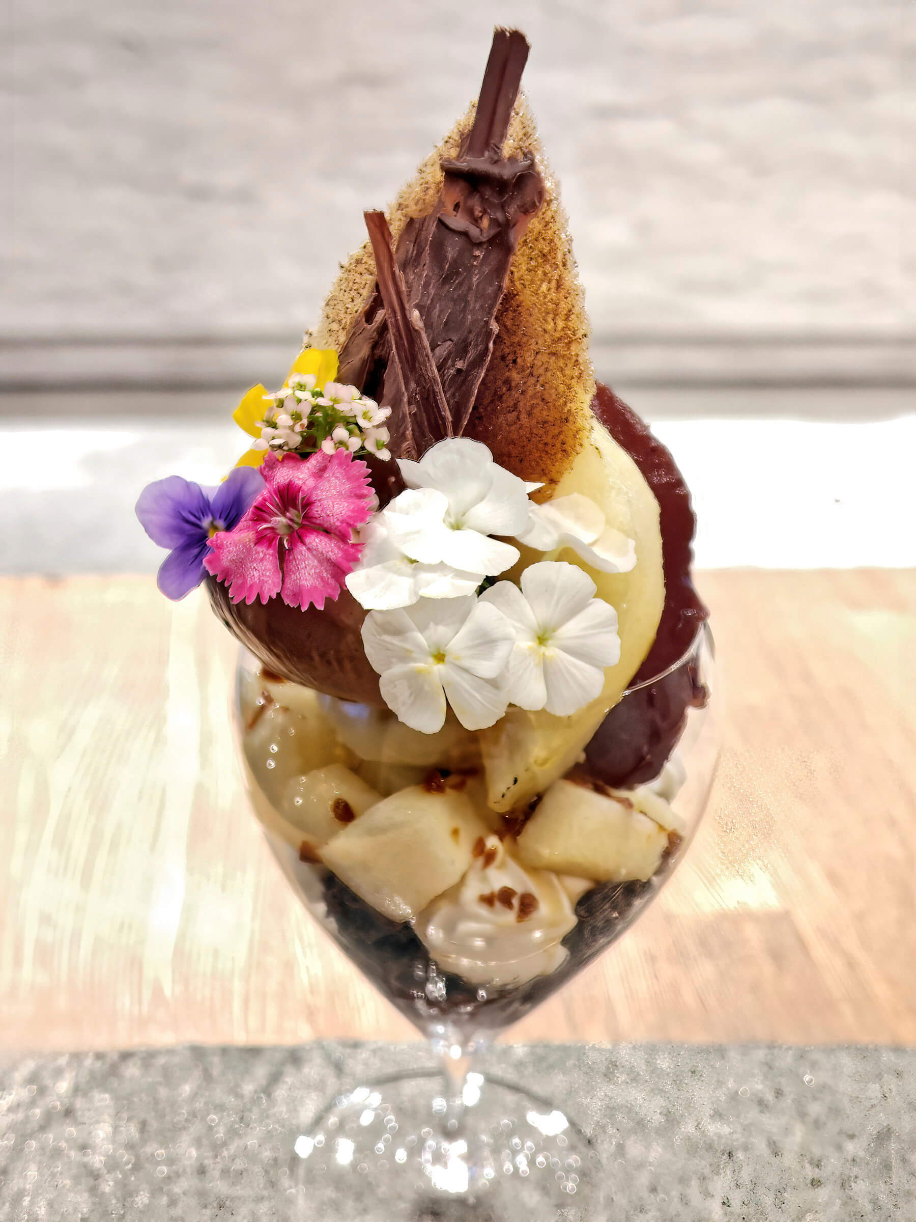 キャラメリゼ、ソルベ、赤ワインコンポート、